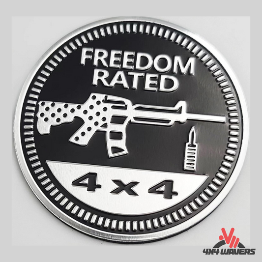 4x4wavers Offroad 4X4 Rated Aluminum Badge Decal, 4X4 3D Emblem - Freedom Sniper Rated Style Design