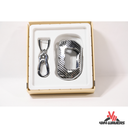 Étui de protection complet en fibre de carbone pour clé FOB 4x4wavers, fibre de carbone argentée avec luxueuse chaîne de clé