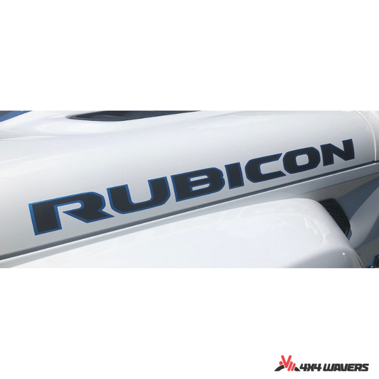 Autocollant Rubicon 4x4wavers pour décoration de capot - Couleur bleue (2 autocollants) - même position que l'autocollant Rubicon d'origine