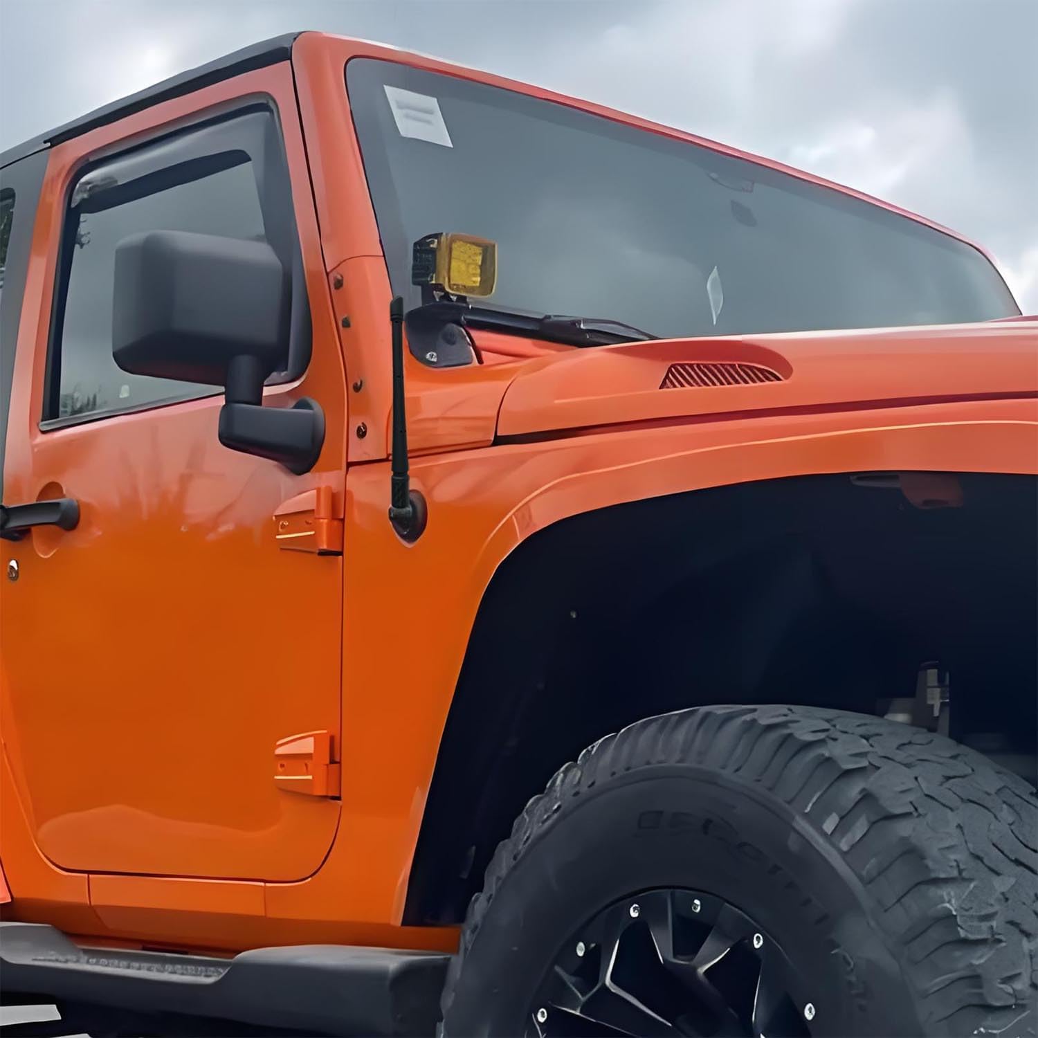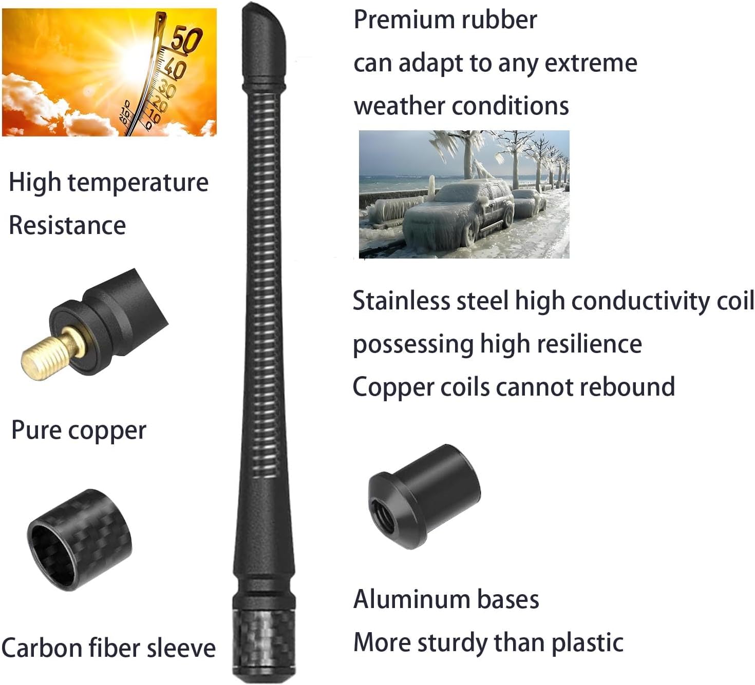 L'antenne profil bas de 7 pouces peut améliorer l'apparence de votre Jeep Wrangler en remplaçant votre antenne métallique longue de 31 pouces. La colonne en véritable fibre de carbone à la base offre un look élégant et aide également la base à bien tenir sur le support.