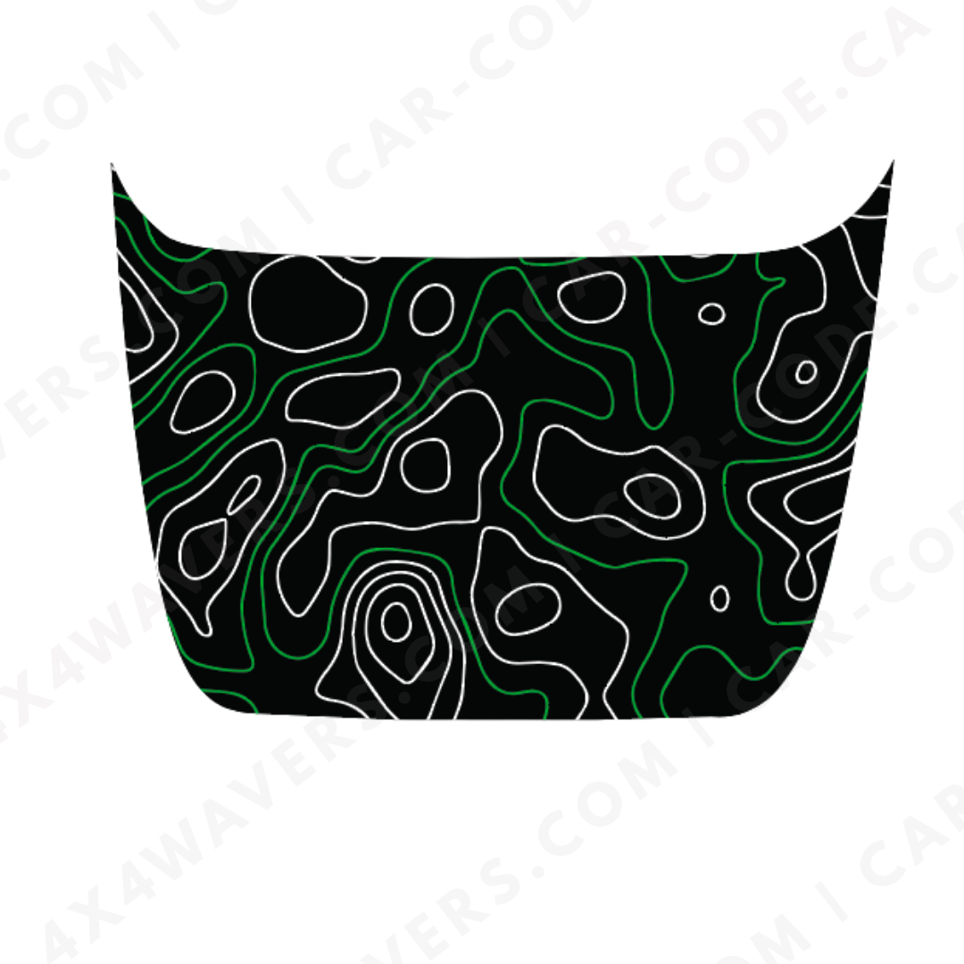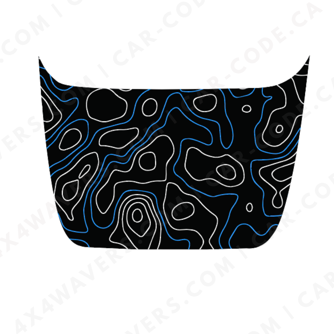 autocollant capot ford raptor, insert capot f150 raptor, graphique capot carte topographique, autocollant capot mat 3m, vinyle découpé avery, graphismes camion tout-terrain, fabriqué au Canada