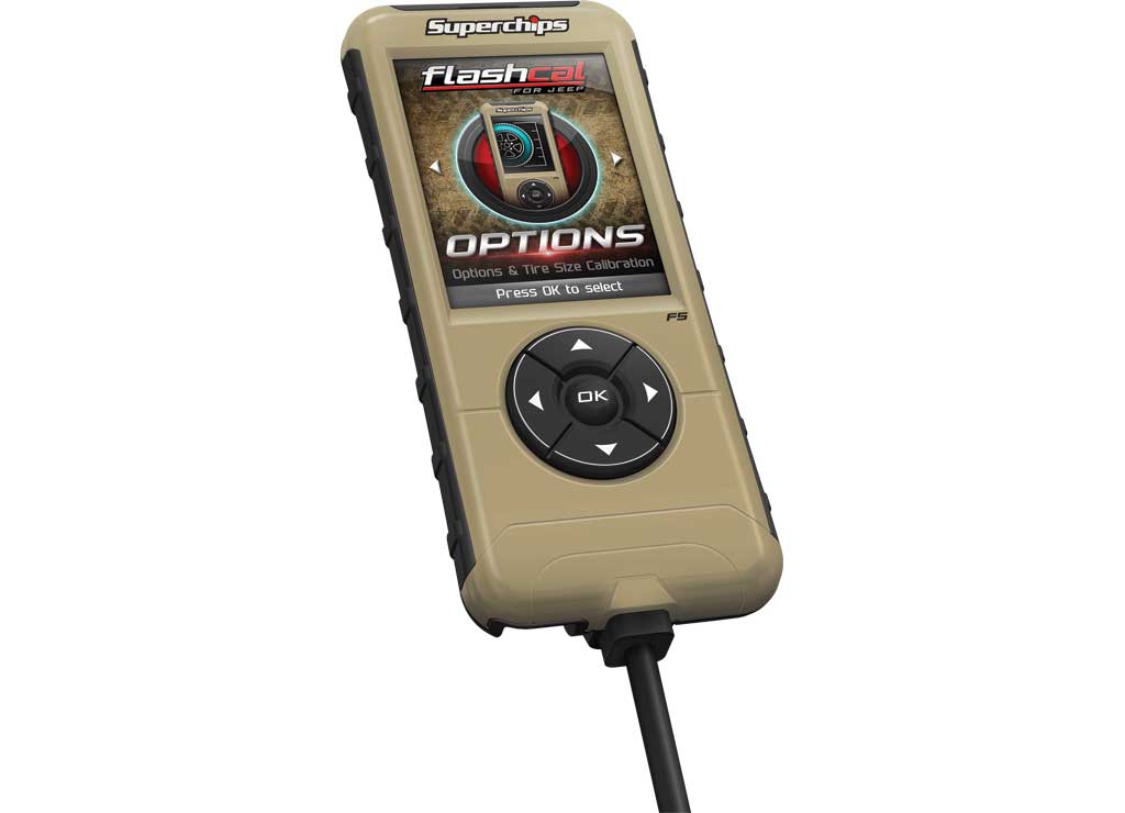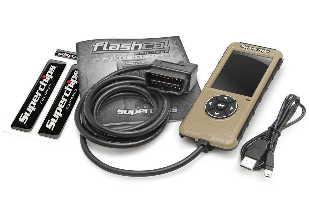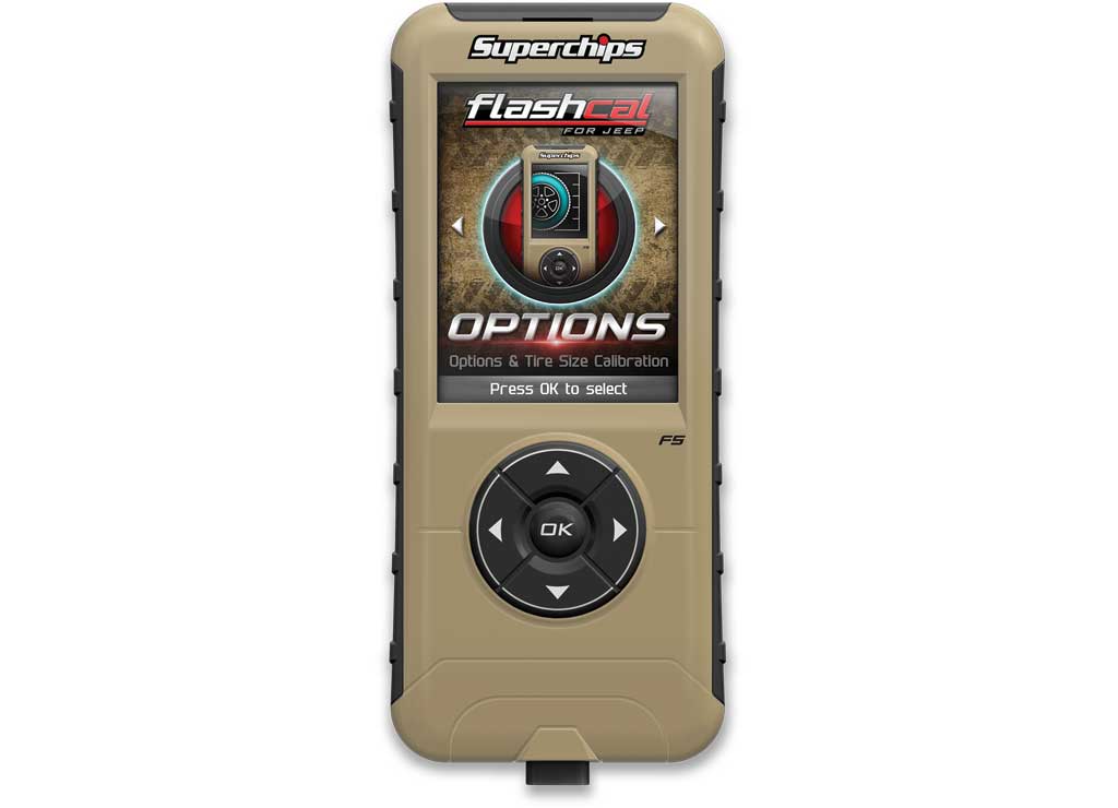 Superchips Flashcal 3571-JL for 2019–2025 Jeep Wrangler JL (3.6L, 2.0L Turbo & 4xe) The Most Capable Feature & Options Control Device for Jeep JL Owners The Superchips Flashcal 3571-JL is the ultimate feature and options control device for 2019–2025 Jeep Wrangler JL models, including 3.6L, 2.0L Turbo, and 4xe variants. Designed for serious Jeep enthusiasts, the Flashcal gives you complete control over your Wrangler’s factory systems, making it a must-have tool for any build—from mild to wild. With easy plug-and-play operation, the Flashcal 3571-JL lets you adjust tire size and gear ratio, configure TPMS settings, and manage lighting options such as daytime running light and fog light control. It also features enhanced Rubicon-specific controls like sway bar and axle locker options, allowing you to tailor your JL for both on-road comfort and off-road capability. Simple, intuitive, and loaded with customization features, the Flashcal is perfect for Wranglers equipped with lifts, oversized tires, or gear swaps. And if you want even more, you can upgrade online to convert your Flashcal into a Flashpaq tuner—adding performance tuning with dyno-tested horsepower and torque gains. For Jeep Wrangler JL owners, the Superchips Flashcal 3571-JL is the most powerful and versatile configuration tool available—putting full vehicle control and expandability right in the palm of your hand. * This product has not been tested or validated on right-hand drive Jeep applications or imported (non-American VIN based)Jeep applications. They are not supported by this product. * Note: Daytime running light options are only available on JL Wranglers where daytime running lights come equipped.