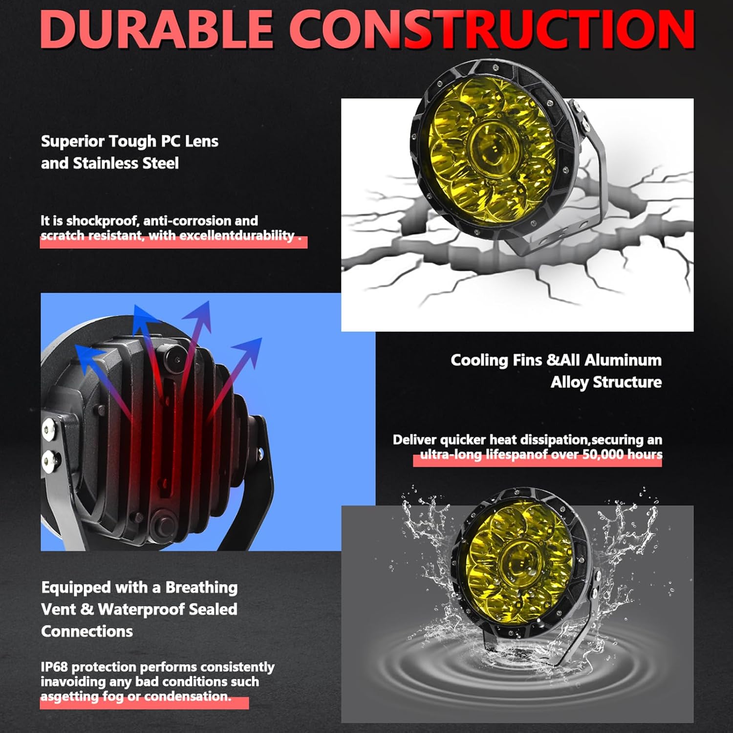 4X4WAVERS JG-SS050 4x4wavers 5.5 Inch Round Offroad Lights LED Spot/Work/Driving/Fog Light (Yellow)