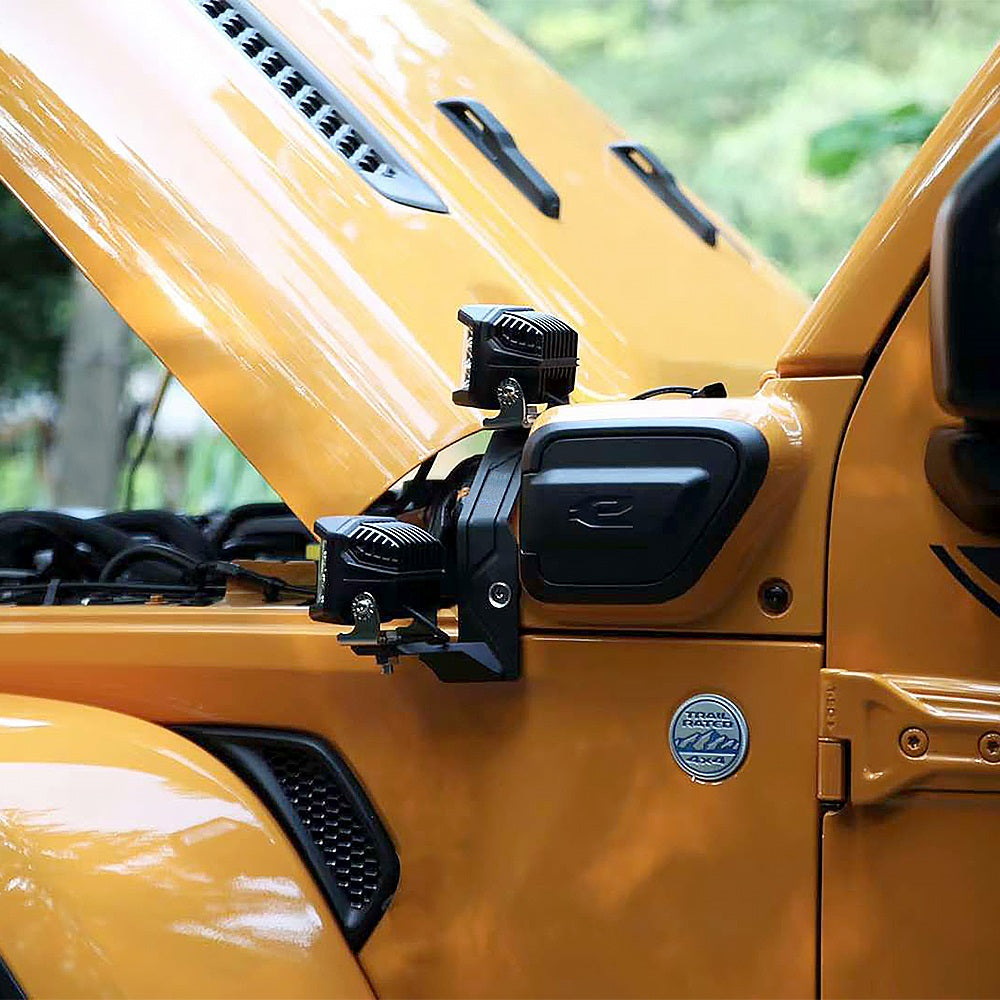 4X4WAVERS Aluminum Dual A-Pillar Light Mounting - Windshield and hood corners Work/Spot Light Brackets - Jeep Wrangler JL/JLU/4XE/JT 2018+ (fits 4XE)