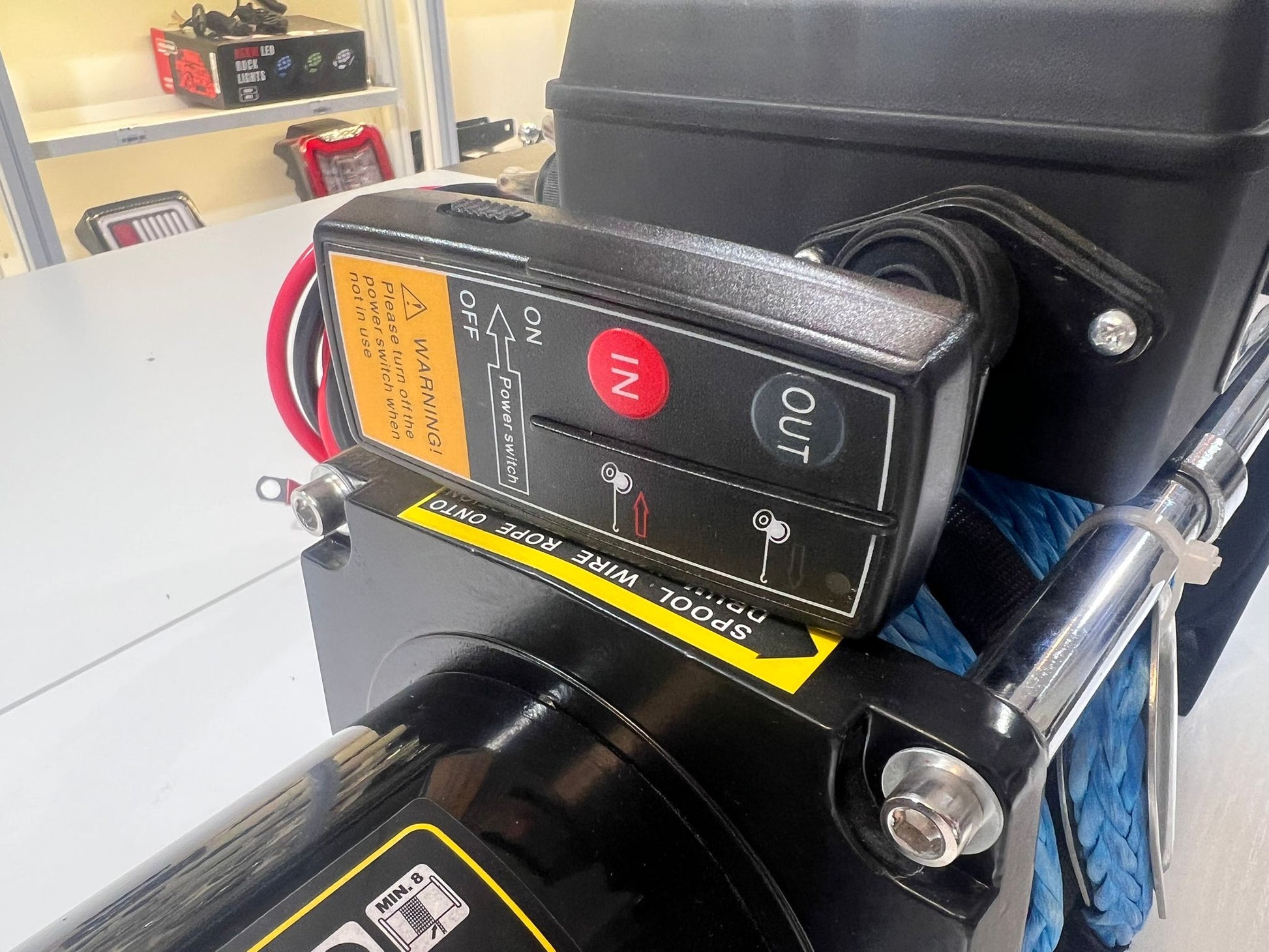 4X4Wavers 8000lbs 12V Electric Winch with wireless remote Synthetic rope: Experience powerful recovery with the 4x4wavers 8000 LB Winch, This waterproof electric offroad winch features a durable Synthetic rope for maximum strength and reliability. Ideal for challenging off-road conditions, it provides dependable performance and durability when you need it most.