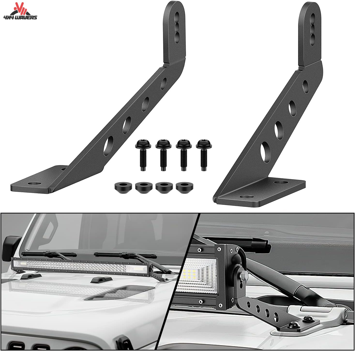 4X4WAVERS Straight Work Light Bar Hood Mounts Bracket Kit - 32 inch - Jeep Wrangler JL/JLU/4XE/Gladiator-JT 2018+