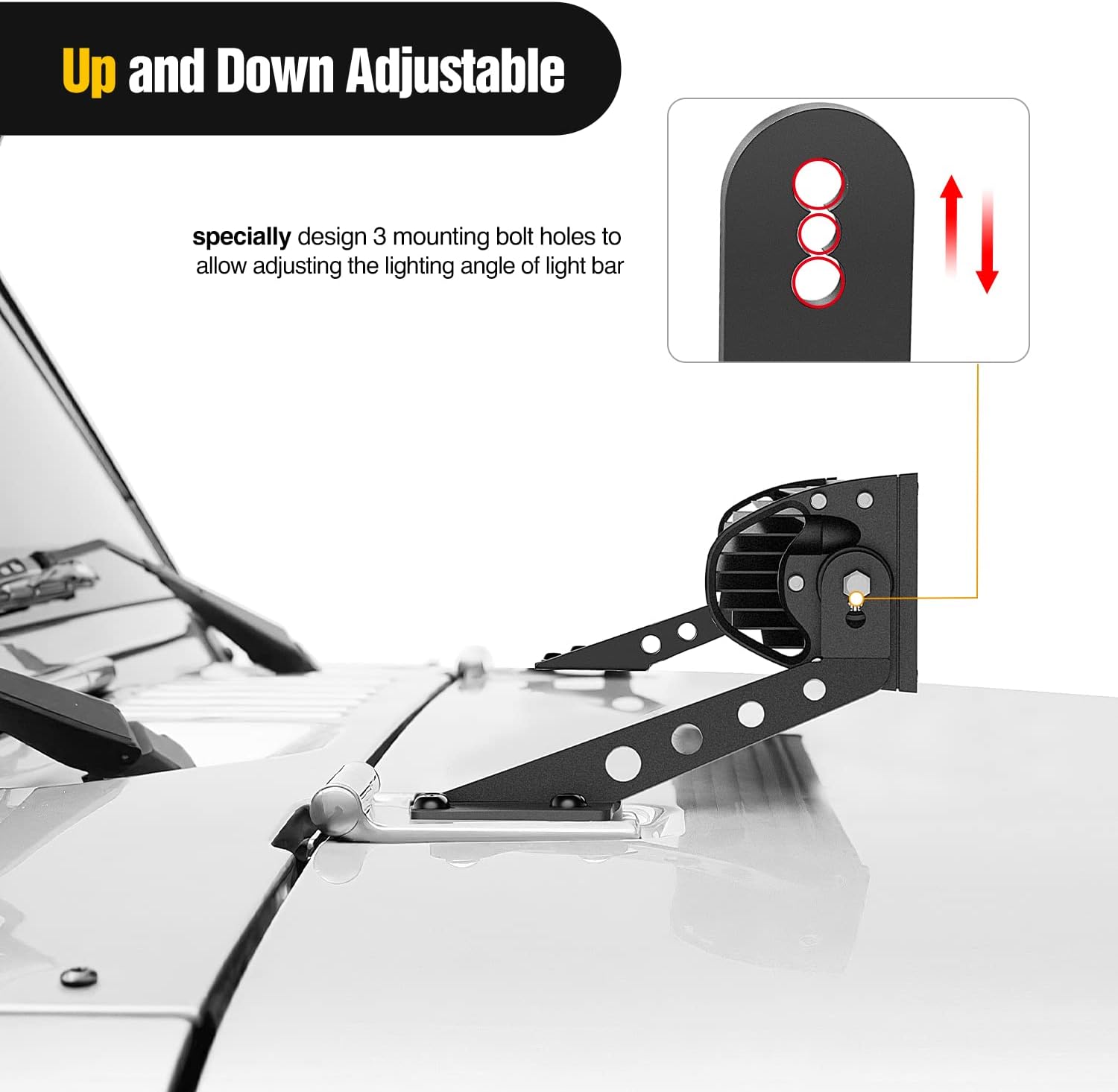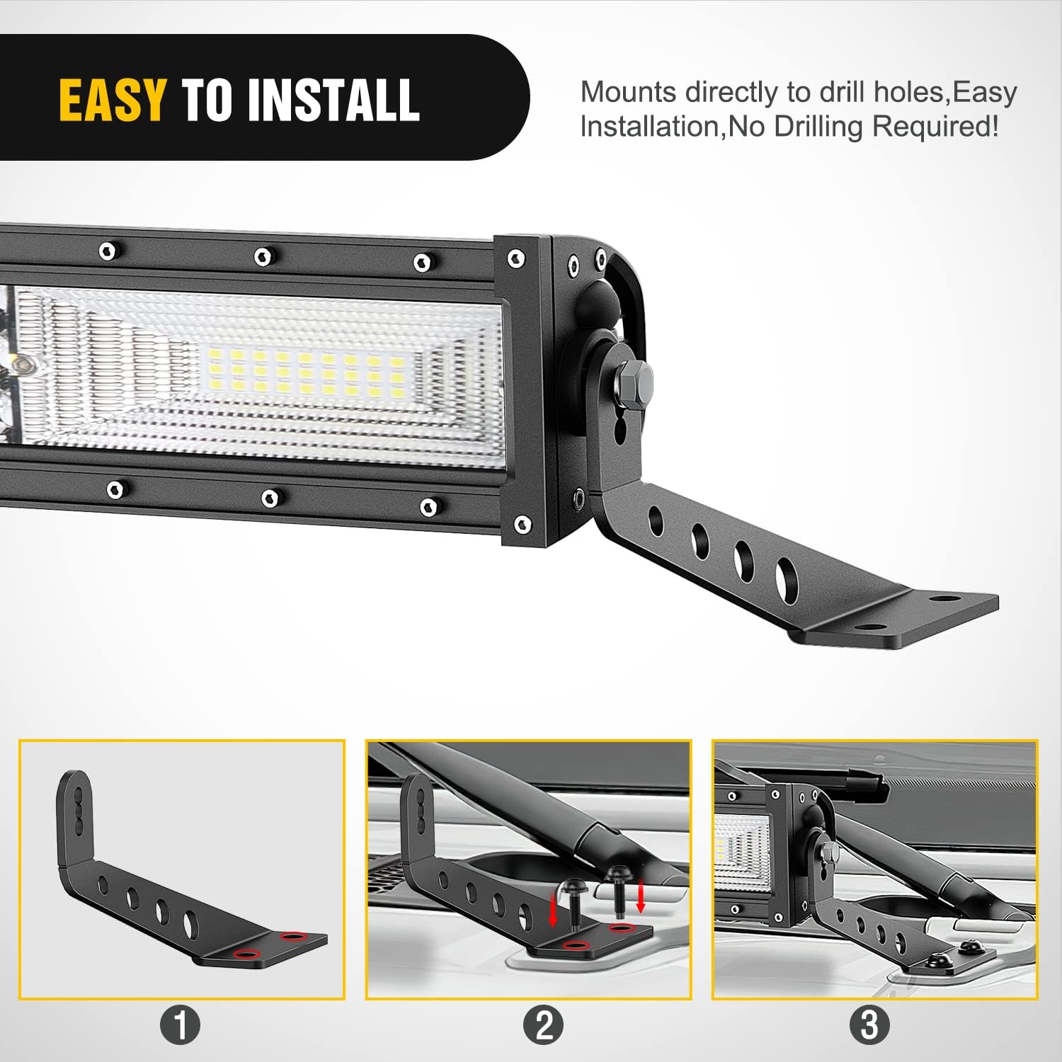 Straight Work Light Bar Hood Mounts Bracket Kit for 32" LED Light Bar for Wrangler JL/JLU/4XE/JT: LED Bar Brackets are easy to install and fit perfectly with original mounting points(precision laser cut), no Drilling/Cutting Required. Corrosion and rust resistance, windshield hood mount bracket Will not Obscure the Driving Vision for Maximum Safety. JK mounting bracket made of high quality Die-casting Aluminum Alloy, help stability and strength when mounted, Dustproof Powder Coated, resists rust and dirt, Sturdy and well made