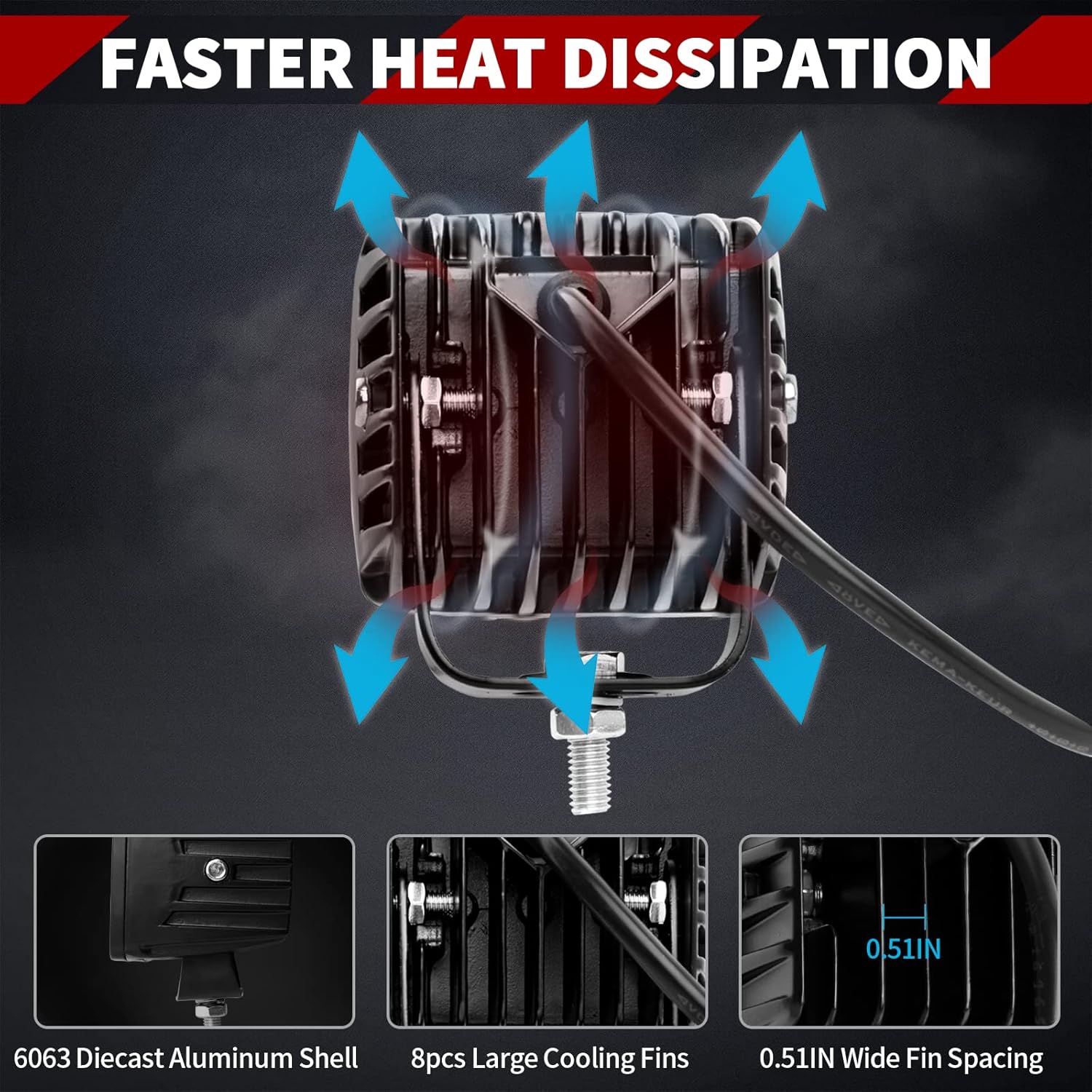 - SPECIFATIONS: Pattern: 60-degree angle Flood & 30-degree angle Spot | Wattage: 5w per bulb | 1,540 Lumens | Rated to run for 50,000 hours | IP68 rated lens for dust, dirt, and sand