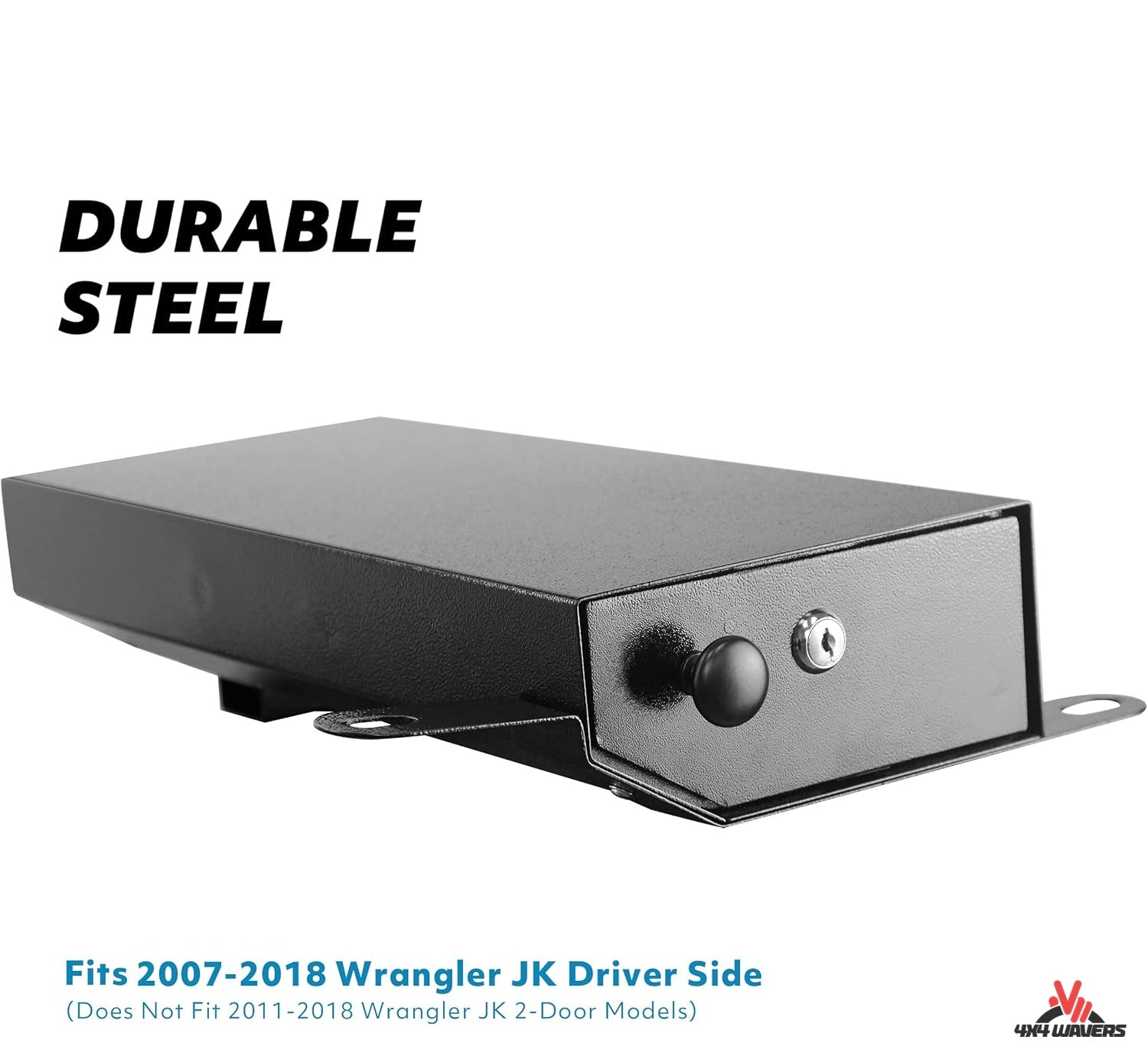 4X4WAVERS Under Driver Seat Lock Box with Key - Gun Armrest Safe Lockbox - Jeep Wrangler JK/JKU 2007-2018 (Not for 2011-2018 JK 2-Door)
