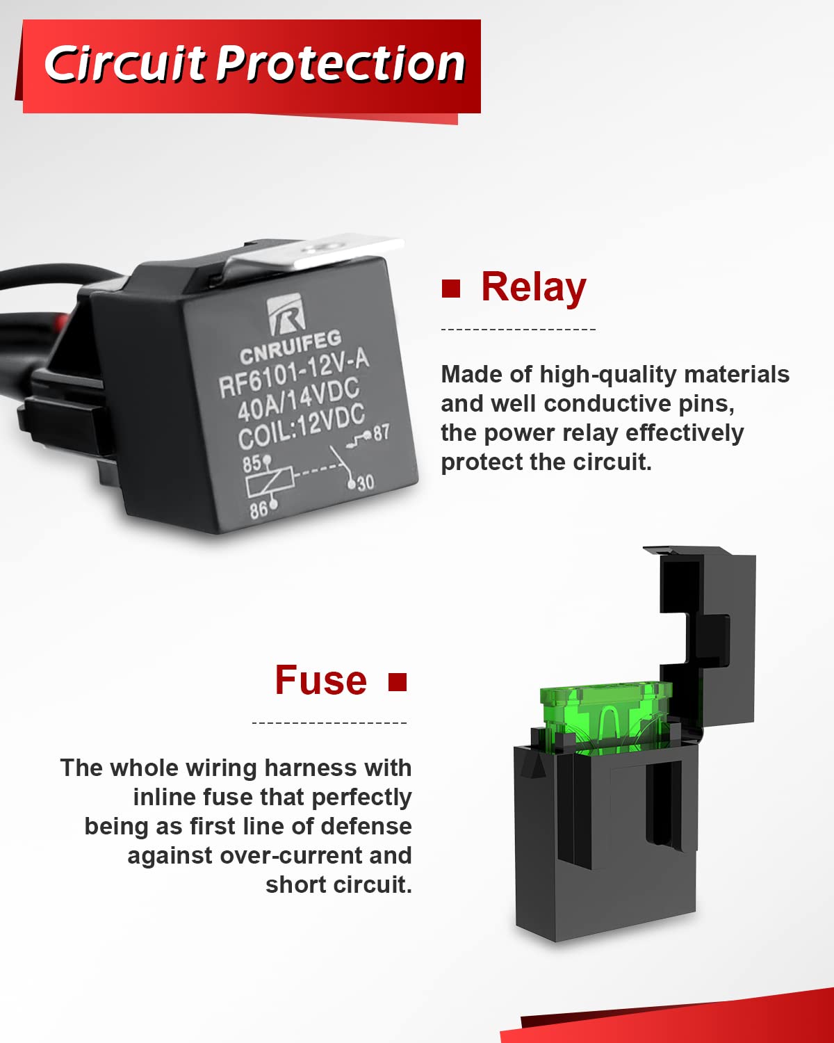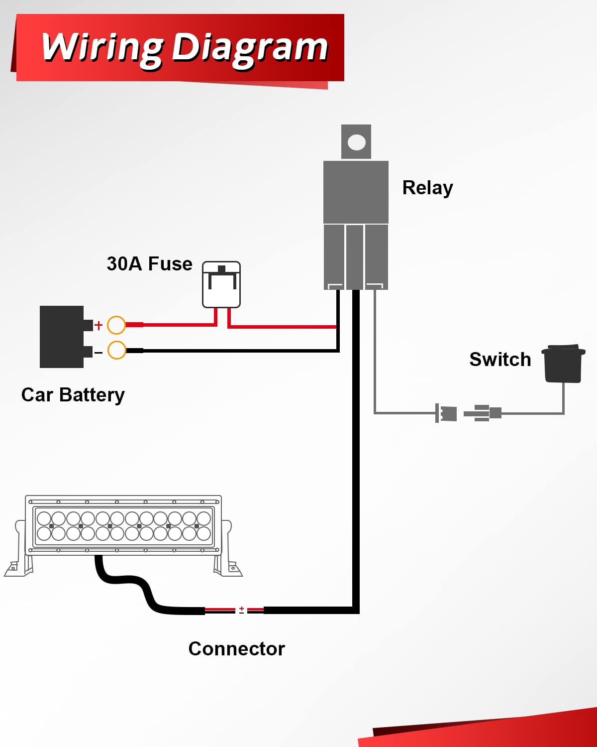 4X4Wavers Wiring Harness for LED Light Bar 1 Lead 12V 16AWG Switch Relay Wire Harness Kit for Offroad: The power rocket switch has a very low profile and will not ruin the overall look of your vehicle. It is very durable to click again and again, The wiring harness is 16AWG, it can bear at least 150W LED light bar, is very safe to use, The 12V relay kit is made of high-quality materials and well conductive pins. 40A fuse is the first line of defense against over-current and short circuit, You can connect this wiring harness to light up your lights on all of the 12V vehicles as many uses: LED light bar, LED light pods, LED fog light, work lights, emergency lights, etc.